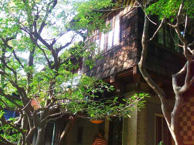 ![]() 瓦塀に時代が見える 廃物利用も兼ねていたのかも 多くの樹木に囲まれたオアシスでもある |