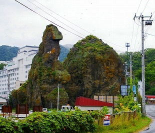 ![]() オロンコ岩 ウトロ港にあり、高さが60mの巨岩で、 先住民族「オロッコ族」から、この名前が付けられた。 |