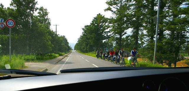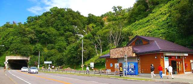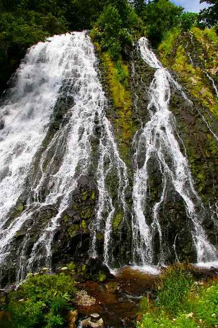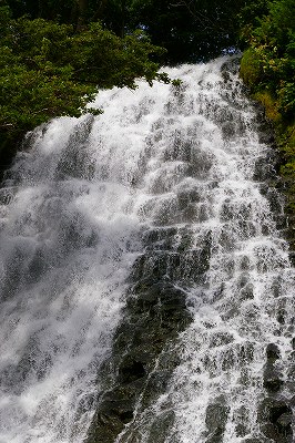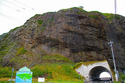 ![]() トンネルを抜けると、今度は《オシンコシンの滝》が現われる。 Pに今朝知床峠を越えて来た自転車の学生に会う。 |