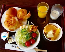 ![]() 豪華な?朝食の量は私です(朝の散歩でエネルギー0ですから) 遊覧船は中止。天気回復したのに、波が高いんだって〜!出港中止は旅行会社で返金だって。 |