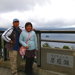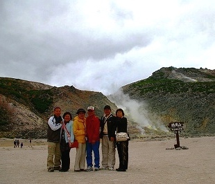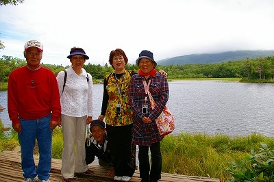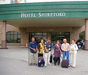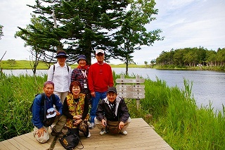 ![]() バックに(早朝のオロンコ岩から見た)知床連山が見えないのが残念だが、皆の笑顔が見えます。 |
