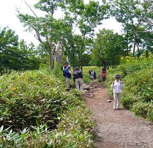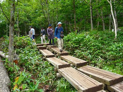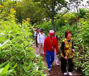 ![]() 黄色い花《ハンゴン草》を眺め、世界遺産知床の木道に歩を進める。 |