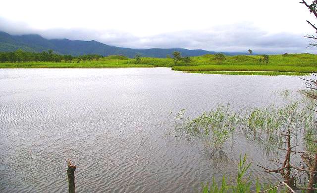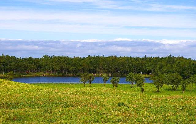 ![]() 展望台からの一湖全景! 開けた一帯のクマザサはここを開拓した牧場跡です。 |