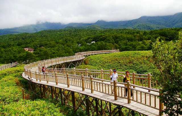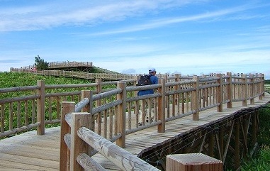 ![]() 新しく出来た展望台への木道は、地上2Mで電気柵も併設のバリアフリーでした。 |