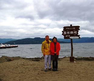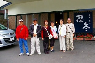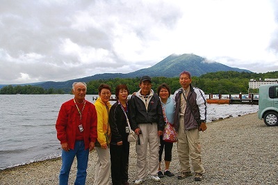 ![]() 阿寒湖を見るの忘れてた「あかんアカン」・・・何度撮ったか集合写真(後ろは雄阿寒岳) |