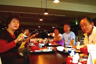 ちょっとー!起きてるー?![]() 「皆さ〜ん!」スタミナ付けて観光〜! |