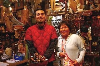 ![]() マグネット式ブレスレットを買い、アイヌ顔さんとパチリ。 |