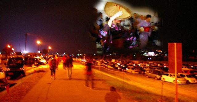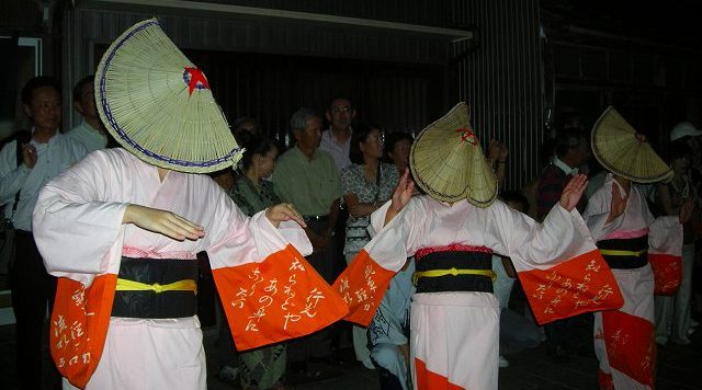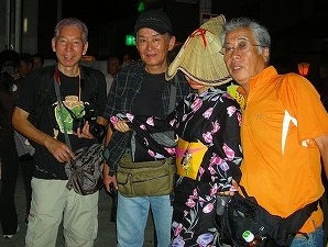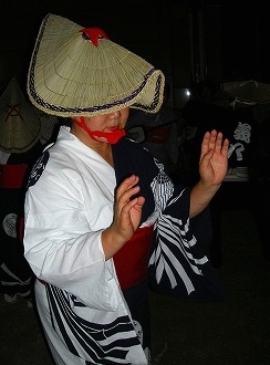 ![]() この踊りは顔が隠れる編み笠をかぶります Masami撮影(目の前で撮影) |