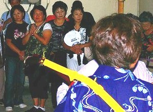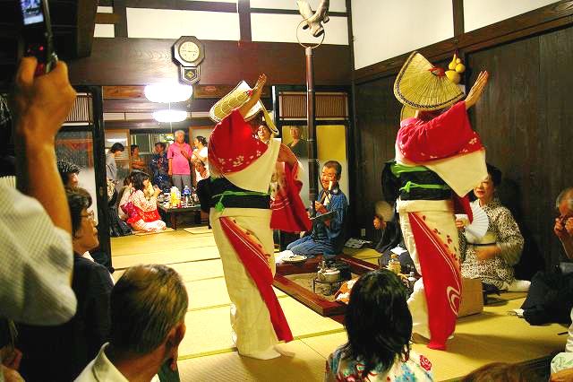 ![]() 家の中でも踊ります・・2〜3人の踊り手に三味線・胡弓・歌い手が |