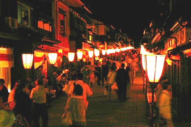 ![]() 町並みにぼんぼりが並び幻想的! |