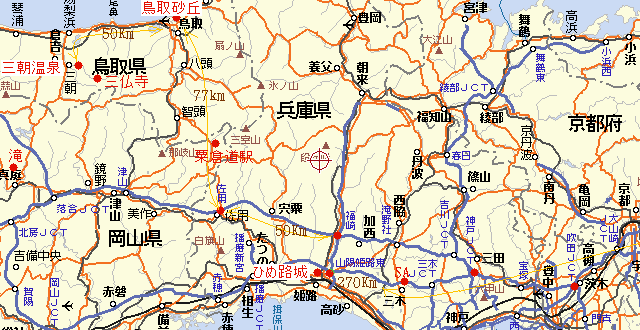 >R179>R373>R53>2:00〜3:30鳥取砂丘391Km:砂の美術館5:00発>R9>6:10三朝温泉456Km