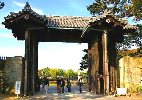 ![]() 入場門近くの三の丸広場から・・・太鼓が「どぉーん・ドォ〜ン!」と鳴り響き、9時開門。 城内「菱の門」 |