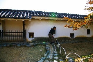 ![]() 「ほの門」くぐると左右に「油塀」 |