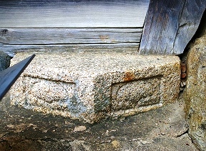 ![]() 城築の石不足に「灯ろうの台石」を使用 五輪塔や宝きょう印塔、さらに石棺なども転用した。 |