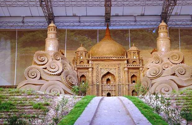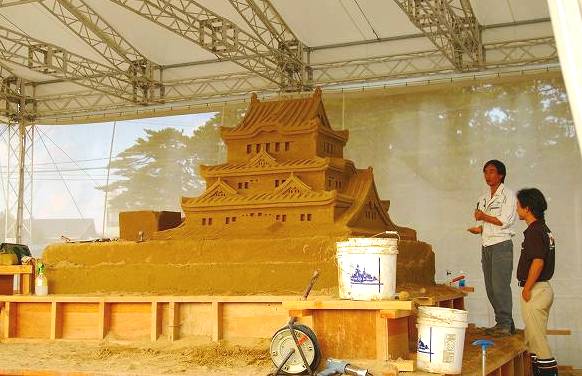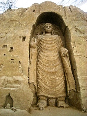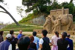 《砂の美術館》 \300日本で唯一「砂」を素材にした彫刻作品を展示する野外美術館 えっ!こんなテント?・・・と思ったが、野外もあり、なかなかなもんでした。 |