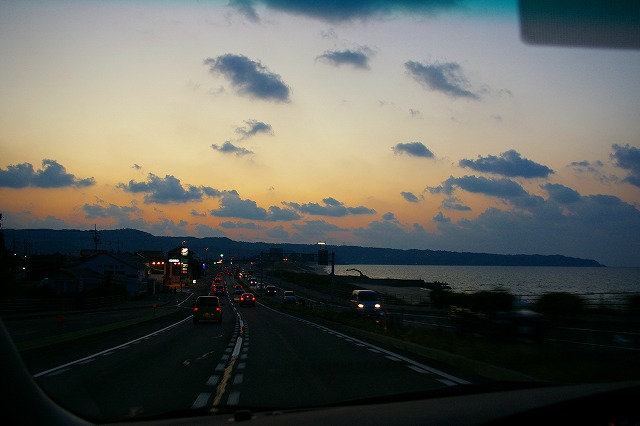 ![]() 白兎海岸を後に、黄昏の浜村温泉を走る。R9バイパス見落とし海岸線をぶっ飛ばす純ちゃん号!ひぇー! |