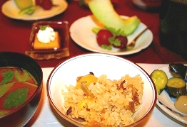 ![]() ![]() ![]() かものカルパッチョ*牛の陶板焼き*栗ご飯*デザート(メロン・黒蜜プリン) |