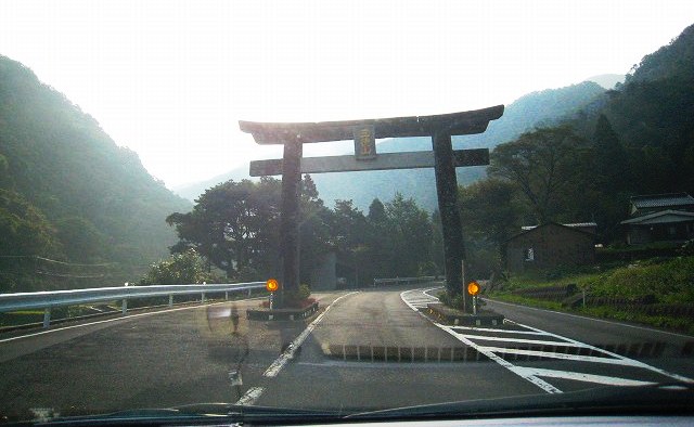 ![]() 三徳山の入り口にあたる鳥居を徐行 純ちゃん撮影 |