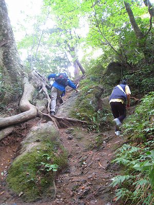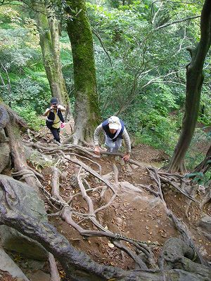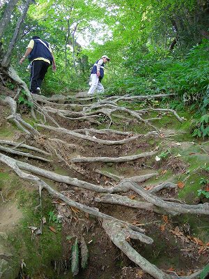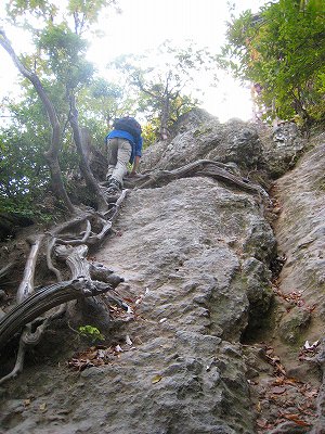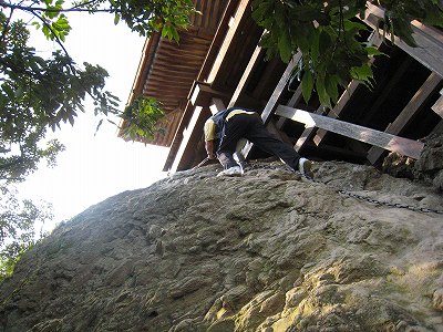 日本一危険な三徳山三仏寺・投入堂 ![]() 垂直に近いカズラ坂にあえぐ・・・国宝『投入堂』まではまだまだ! |