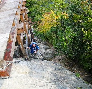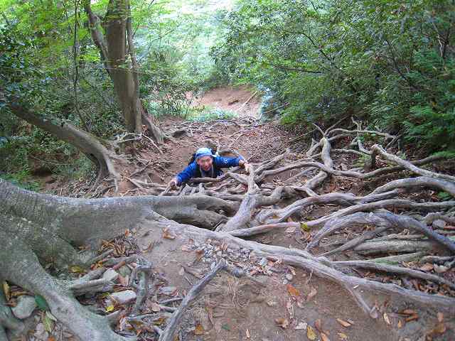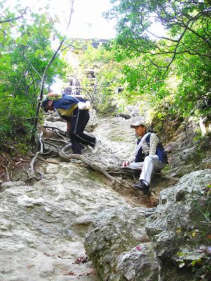 ![]() 捕まるところがないので?四つんばい?の純ちゃん&「輪袈裟」と熊よけの鈴つけた殿が登る |