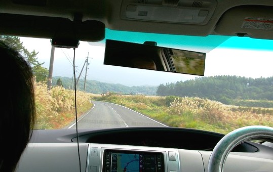 ![]() 神庭の滝も近づいたころ、一面にススキが広がる秋の中を走る・・・でも、純ちゃんの稲妻運転で素早く?走り抜ける。 |