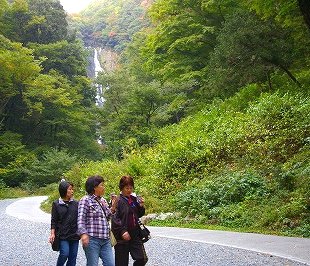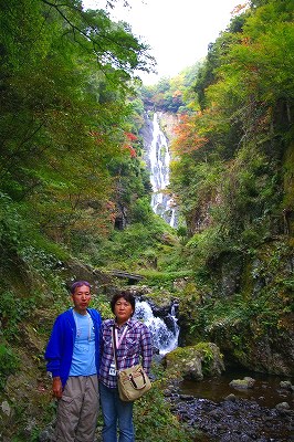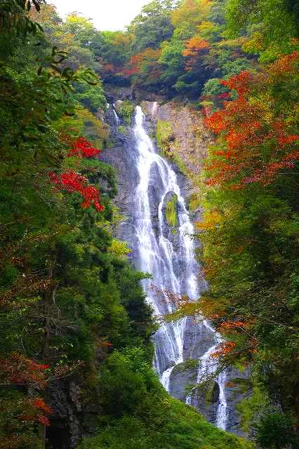 ![]() 高さ110m、幅20mの断崖絶壁を落下する豪快さは、西日本一の規模。少しの紅葉がまた風情あり。 |