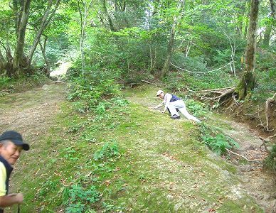 ![]() 「くさり坂」 Yukuoさん: 階段では先が思いやられると覚悟したが、日曜大工で鍛えた体は徐々に自力を発揮。 |