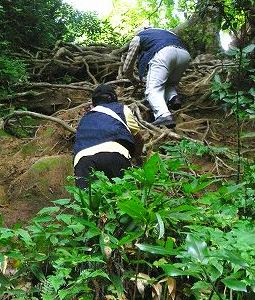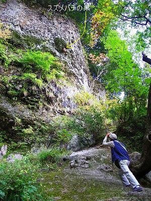![]() スズメバチの巣を撮りに、更に登る純ちゃん。 |