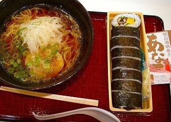 ![]() お昼はここで・・名物「たまねぎラーメン」と「明石海峡巻き・あなご」は、それなりに旨かった。 |
