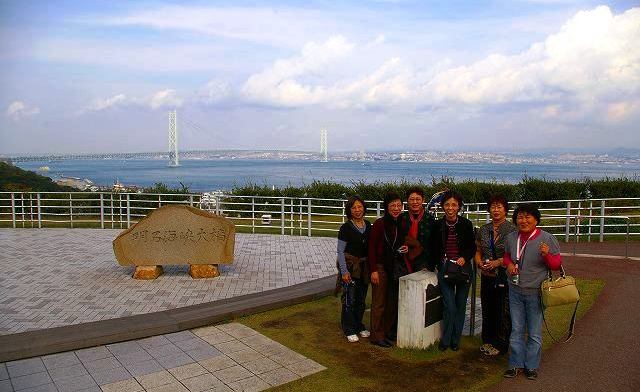 ![]() 淡路ハイウェイオアシスで明石大橋バックに記念撮影 |
