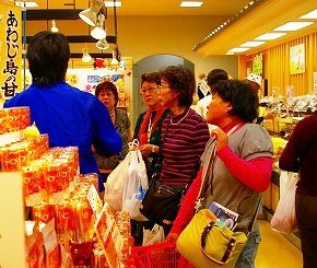![]() お土産コーナーで品定め?「なると金時」「玉ねぎ」 |