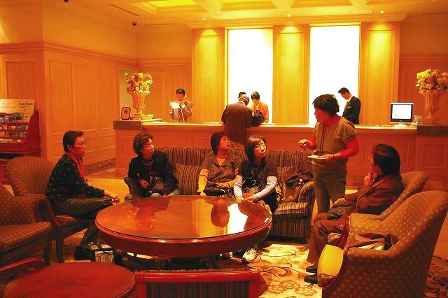 ![]() フロントで部屋割りと館内の案内 夕食は5:30ね!その前にスパへ急いで入りに、バスで行くの! |