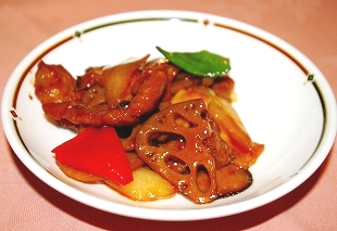 ![]() 牛肉と鳴門蓮根のオイスターソース炒め |