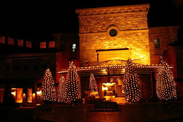 ![]() ![]() 本館に続く道路もイルミネーションされてます。スパへのバスの中から見えます。 |
