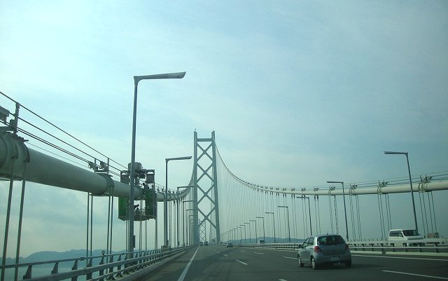 ![]() JCT.JCTと交差し、明石海峡「明石海峡大橋」を渡る 橋の上で車を止めて〜!おばさん達の言いたい放題が・・!徐行しかダメ! Masami撮影 |