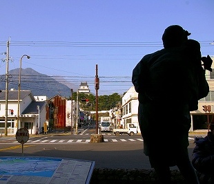 島原の子守唄(宮崎康平の作詞作曲?)像と島原城 |