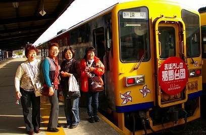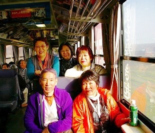 ![]() *列車内は盛り上がっていました*自宅前の沿線で手を振るYasukoさんの姉二人 |