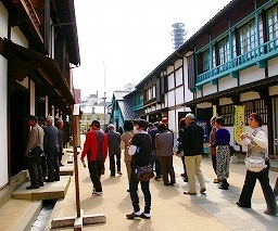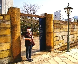 ![]() 慌ただしく見学を終えバスに急ぐ(何時も最後の方) 出島建設当時の石垣を保存 |