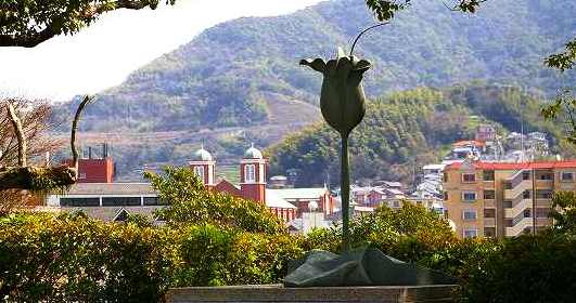 ![]() 世界各国から贈られた平和の像建ちならぶ |