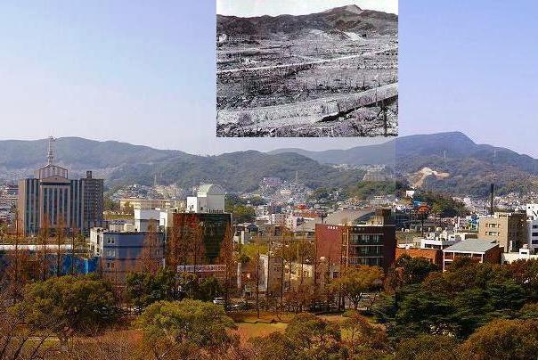 ![]() 展望デッキから爆心落下中心地方向*白黒写真は林重男さんS.20/10撮影(64年前) |