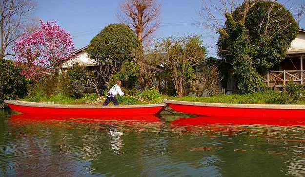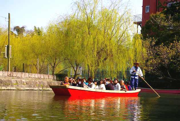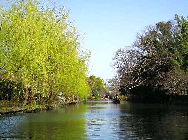 ![]() 柳川の川下り*柳の新芽が出てきれい! 茶色の建物は松岡修三の母校でテニス部寮です。 |
