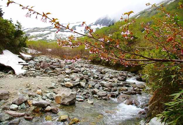 ![]() 標高1850mの楠川に『タカネザクラ』が覆いかぶさる |