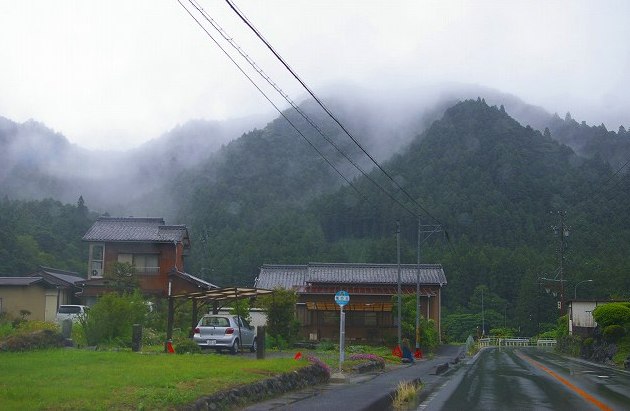 ![]() 鳳来寺近くの国道・・山は雨雲に覆われていた。 鳳来寺パークウェーに行く途中・・・しばらく走ると土砂崩れの現場に遭遇!!直ぐ引き返す! |