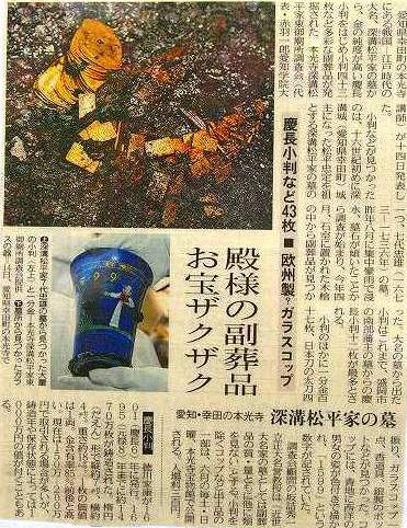 愛知県蒲郡市幸田町「本光寺」 5月15日の中日新聞に松平家の墓発掘・・・金銀小判が!