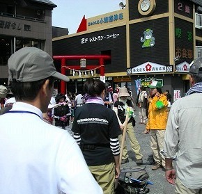 ![]() 2:30 女性2人のガイドさんの注意を聞いて 体操で体ほぐし、気合を入れて「エイエイオー」の掛け声 |