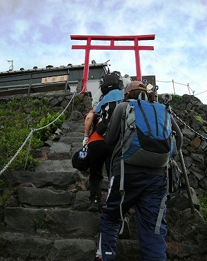 ![]() 5:40「鳥居荘」の鳥居をくぐり、まだまだ続く岩場に挑戦6:00 |