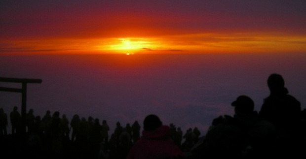 ![]() 《富士山頂》 日が昇っても薄い霧が覆い、幻想的な非常に珍しいご来光を目にした。 Am4:45 |