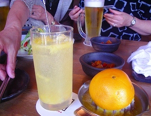 ![]() オレンジサワーを頼んだら・・自分で絞るのにびっくり! |