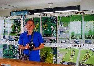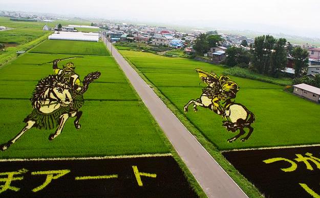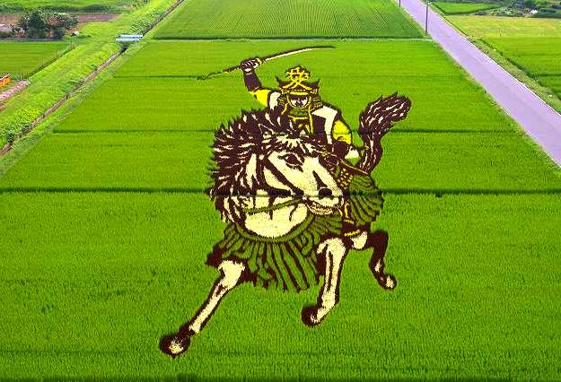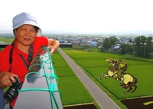 ![]() 展望台の天主には歴代田んぼアートの写真 |