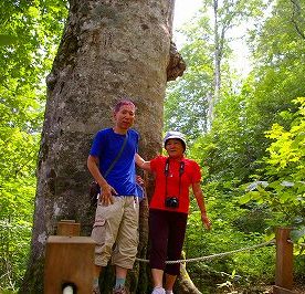![]() この太さはすご〜い・自然はすばらしーい! 二人で触ってパワーをもらいました 山林(森林浴)の遊歩道はガン抑制のホルモンを刺激してくれるそうです |